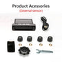 Package includes 1 pc Tire pressure monitoring system, 4 pcs external or built-in sensor, 1 USB cable, 1 pc of tools(set) for installation
